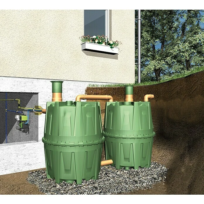 4rain Regenwassertank Komplettpaket Herkules Haus 3.200 L (2 X 1.600 L), Kunststoff