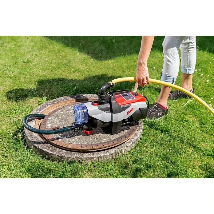 Die AL-KO Jet 3600 Easy Gartenpumpe bietet zahlreiche Komfort-Ausstattungsmerkmale und besonders kraftvolle, langlebige und energiesparende Bewässerungstechnik für größere Gärten. Sie wollen Ihr Gießwasser für Blumen, Rasen und Garten ganz bequem aus einem Brunnen, Teich oder Zisterne entnehmen? Sie möchten sich entspannt unter Ihrer Gartendusche abkühlen? Sie möchten klares Wasser über lange Strecken mit hohem Druck fördern? Dann liegen Sie mit unseren Gartenpumpen genau richtig. Sie sind der ideale Helfer bei der Be- und Entwässerung Ihres Gartens. Dabei sind sie mit wenigen Handgriffen installiert und verrichten leise und effizient ihre Arbeit. Große Saugwirkung und effektiver Wasserfluss durch integriertes Venturi-System. Durch die Förderhöhe bis 38 m und die Selbstansaughöhe von maximal 8 m lässt sich die Wasserpumpe besonders variabel einsetzen. Ob aus einem oberirdischen Reservoir, der Regentonne oder einem tief liegenden Brunnen – die sofort betriebsbereite Pumpe mit einer Fördermenge bis 3600 l/h kann in jeder Situation überzeugen. Damit keine Schäden durch grobe Verunreinigungen auftreten, verfügt sie über einen effektiven und großen Filter, der sich leicht reinigen lässt und daher lange verwendet werden kann. Das effektive Ansaugsystem der AL-KO Gartenpumpe Jet 3600 Easy mit 850 W Leistung sorgt dafür, dass die Pumpe schnell einsetzbar ist. Energieeffizient und leistungsstark. Das glasfaserverstärkte Gehäuse der AL-KO Gartenpumpe JET 3600 Easy und die große Auflagefläche ermöglicht einen sicheren Stand der Pumpe. Die Anschlüsse für die Schläuche entsprechen der üblichen Standardgröße von 1 Zoll, sodass auch bereits vorhandenes Material problemlos mit der Pumpe kombiniert werden kann. Hinweis: Die Gartenpumpe ist nicht für Trinkwasser, sondern nur für Brauchwasser und chlorhaltiges Wasser (Schwimmbadwasser) unter 35 °C geeignet. Ebenso ist sie nicht für den Einsatz in Salzwasser, Wasser mit aggressiven Chemikalien oder sandhaltigem Wasser geeignet.