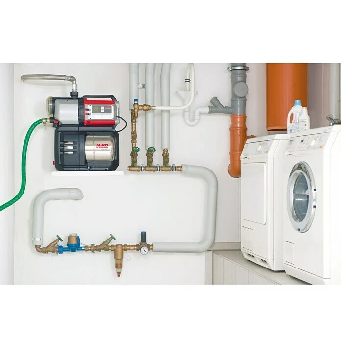 Die Hauswasserwerk HW 6000 FMS Premium von AL-KO ist bestens geeignet zum Fördern von Regenwasser aus Brunnen und Zisternen, zur Wasserversorgung im Haus, Hof und Garten und zur Druckerhöhung im vorhandenen Wassernetz. Durch die Förderhöhe von bis zu 60 Metern und einer maximalen Selbstansaughöhe von maximal 8 Metern bei einem Druck von 6,0 bar lässt sich das Hauswasserwerk variabel einsetzen. Ob aus einem oberirdischen Reservoir, der Regentonne oder einem tief liegenden Brunnen – die sofort betriebsbereite Pumpe mit einer herausragenden Fördermenge von bis zu 6.000 Litern/Stunde kann in jeder Situation überzeugen. Der patentierte, leicht zu reinigende integrierte XXL-Vorfilter schützt optimal vor Verschmutzungen des Pumpeninneren. Anwender schätzen die Nutzerfreundlichkeit und die Möglichkeit, intuitiv individuelle Einstellungen am Display vornehmen zu können. Hinweis: Das Hauswasserwerk ist nicht für Trinkwasser, sondern nur für Brauchwasser geeignet.