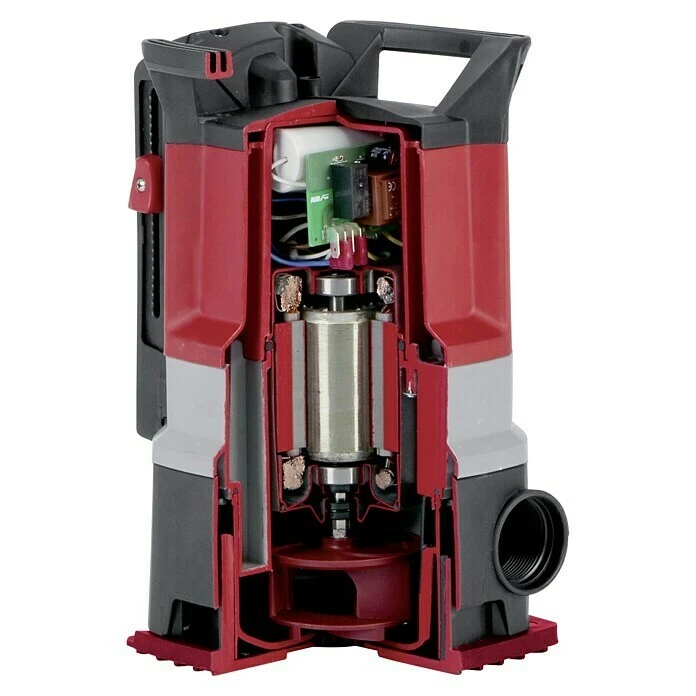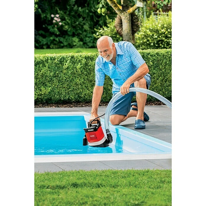 Wo früher zwei verschiedene Pumpen benötigt wurden, genügt heute die Kombi-Tauchpumpe AL-KO TWIN 14000 Premium. Damit ist diese Wasserpumpe eine richtige Universaltauchpumpe, die Sie äußerst flexibel einsetzen können: sei es zum Aus- und Umpumpen verschmutzter Flüssigkeiten wie bei Überschwemmungen oder in Baugruben, sei es für Klarwasser-Anwendungen wie das Wasserpumpen aus Teichen, Regentonnen oder auch in Swimmingpools. Dank des patentierten TWIN-Combi-Systems können Sie damit auf vielseitige Art flachsaugend bis auf 8 mm entwässern. Der zuverlässige Alleskönner begeistert zudem durch eine umfangreiche Ausstattung mit 10 m Kabel, Universalanschluss und Thermoschutzschalter sowie die äußerst hochwertige Verarbeitung. Die multifunktionale Kombi-Tauchpumpe kann dank des praktischen integrierten Tragegriffs und des 10-m-Stromkabels sowie des Gewichts von rund 8,2 kg mobil oder stationär zum Entwässern verwendet werden. Durch ihre kompakten Maße von 25,3 x 19, 3 x 31,7 cm, den robusten und rostfreie Edelstahllaufwellen, dem dauergeschmierten und wartungsfreien Kugellager, den soliden 3-fach-Dichtungen und dem stabilen Gehäuse erhalten Sie eine sehr langlebige und zuverlässige Universal-Pumpe. Sie kommt auch mit gröberen Verschmutzungen im Wasser gut zurecht, denn hierfür stehen die extragroßen Einsaug-Öffnungen bereit. Sowohl Klar- als auch Schmutzflüssigkeiten werden bei einer Korngröße bis 30 mm schnell und sicher abgepumpt. Mit ihren kräftigen 850 W Leistung und der Fördermenge bis max. 15.000 l/h ist das Aus- und Umpumpen in kürzester Zeit erledigt. Die AL-KO Kombi Universal-Tauchpumpe TWIN 14000 Premium ist mit einem integrierten Niveauschalter ausgestattet: Damit kann die Wasserhöhe im Automatikbetrieb ganz bequem eingestellt werden, alternativ ist im manuellen Betrieb auch ein Flachabsaugen möglich. Sie ist für Eintauchtiefen bis max. 7 m vorgesehen. Durch die Pumphöhe bis 10 m sind auch große Tiefen leicht zu bewältigen. Der Pumpenausgang hat eine Größe von 1,5 Zoll, dies entspricht etwa 47,8 mm. Der 90°-Winkelanschluss verfügt über ein Universal-Anschlussstück, und mit dem beigelegten Kombinippel können alle handelsüblichen Schlauchgrößen angeschlossen werden. Hinweis: Die Tauchpumpe ist nicht für Trinkwasser, sondern für nur Brauchwasser unter 35 °C geeignet. Ebenso ist sie nicht für den Einsatz in Salzwasser, Wasser mit aggressiven Chemikalien oder sandhaltigem Wasser geeignet.