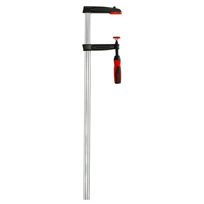 Die Tempergusszwinge von Bessey ist ideal für jeden Heim- und Handwerker. Sie überzeugt durch beste Qualität und gehört sowohl in jede Werkzeugkiste als auch in jede gut ausgestattete Werkstatt. Dieses universell einsetzbare Spannwerkzeug eignet sich hervorragend zum Halten von Werkstücken für eine Bearbeitung oder Verbindung mit weiteren Teilen. Der hochwertige 2-Komponenten-Kunststoffgriff sorgt für eine optimale Handhabung und sicheren Halt. Außerdem besitzt diese hochbelastbare Schraubzwinge eine stabile Hohlprofilschiene mit Riffelung als Verstärkung gegen Torsionskräfte. Die Druckplatten können zudem werkzeuglos ausgewechselt werden.