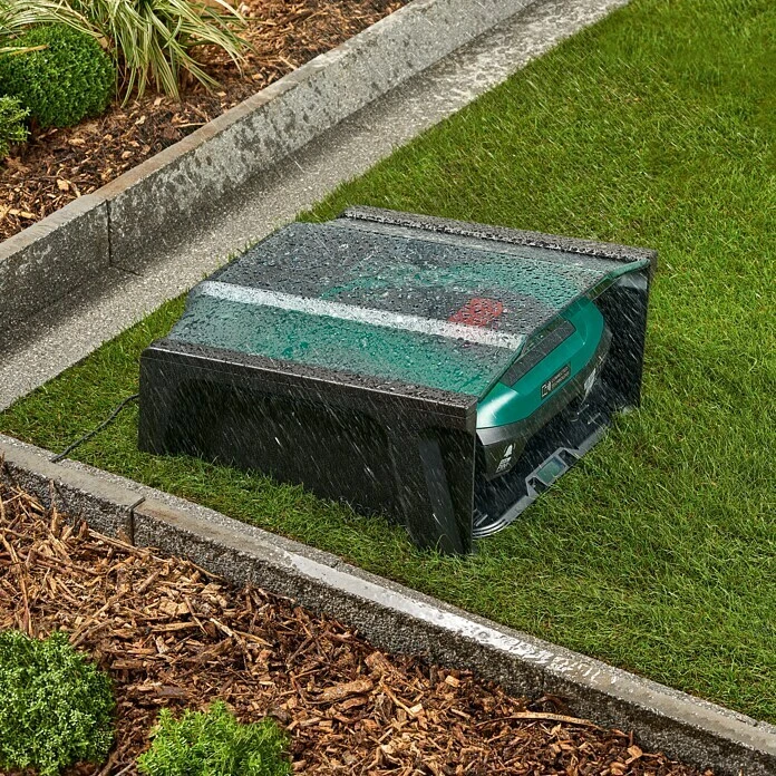 Die Mähroboter-Garage von Bosch ist der ideale Aufbewahrungsort für die Rasenroboter. Die praktische Garage schützt wertvolle Mähgeräte vor ungünstigen Witterungsverhältnissen wie Wind, Niederschlag oder Sonnenstrahlung. Sie ist aus einem hochwertigen, UV-resistenten Kunststoff gefertigt. Für einen sicheren Halt sorgt die Bodenbefestigung. Die Garage ist passend für die Bosch Mähroboter Indego XS 300, S 500, S+ 500, M 700, M+ 700 und für die Vorgängermodelle Indego 350, Indego 400, Indego 350 Connect, Indego 400 Connect, Indego S+ 350 und Indego S+ 400.