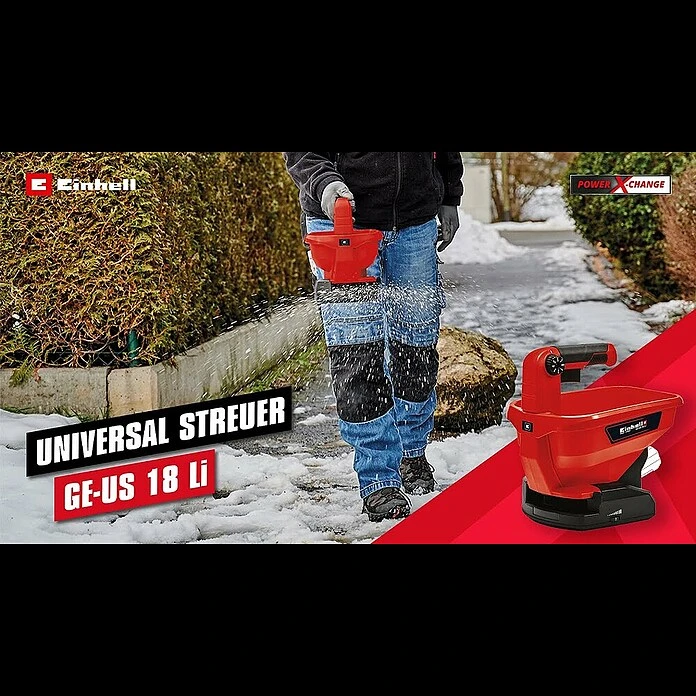 Der Einhell Universal Streuer GE-US 18 Li erleichtert viele Arbeitsschritte rund um Garten und Hof. Ob Düngen, Säen oder zielgerichteten Ausbringen von Streusalz. Als Mitglied der Power X-Change Familie wird der Streuer mit einem 18V-System-Akku betrieben, der in allen Einhell Geräten dieser Reihe verwendbar ist. Ideal dosierte Streuleistung liefert die 6-stufige elektronische Drehzahlregulierung ebenso wie die 8-stufige, ergonomische Streumengenregulierung. Der Behälter hat ein Fassungsvermögen von 3,3 Liter. Dabei ist eine Streubreite von maximal fünf Meter individuell einstellbar, was eine Flächenabdeckung von ca. 15 qm bedeutet. Die Handhabung ist ergonomisch und sicher dank Softgrip. Mit dem Einhell Universal Streuer GE-US 18 Li lassen sich Dünger, Rasensamen oder auch Streusalz einfach und effizient ausbringen. Somit steht der ganzjährigen Nutzung des praktischen Helfers nichts im Wege. Die Lieferung erfolgt ohne Akku und Ladegerät. Diese sind separat erhältlich, zum Beispiel als Einhell PXC-Starterset.