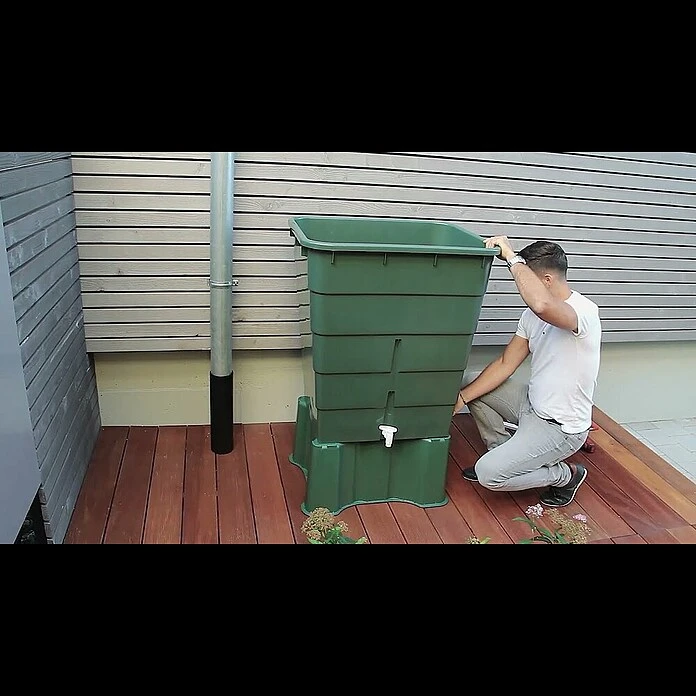 Der Garantia Füllautomat filtert grobe Verschmutzungen (z.B. Laub) zuverlässig aus dem Regenwasser und füllt die Regentonne automatisch auf. Eine Überlauffunktion verhindert das Überlaufen des vollen Tanks. Dank der schlanken Bauform werden nur 16 mm Abstand zwischen Fallrohr und Hauswand benötigt. Der Füllautomat eignet sich für Dachflächen bis 50 m².