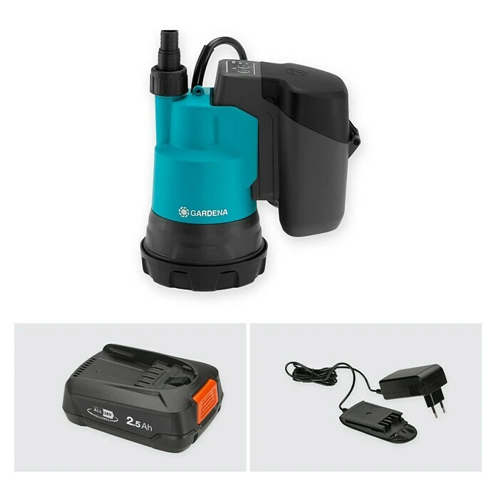 Gardena Akku-Klarwasserpumpe 2000/2 18V P4A 18 V, 1 Akku, Max. Fördermenge: 2.000 L/h