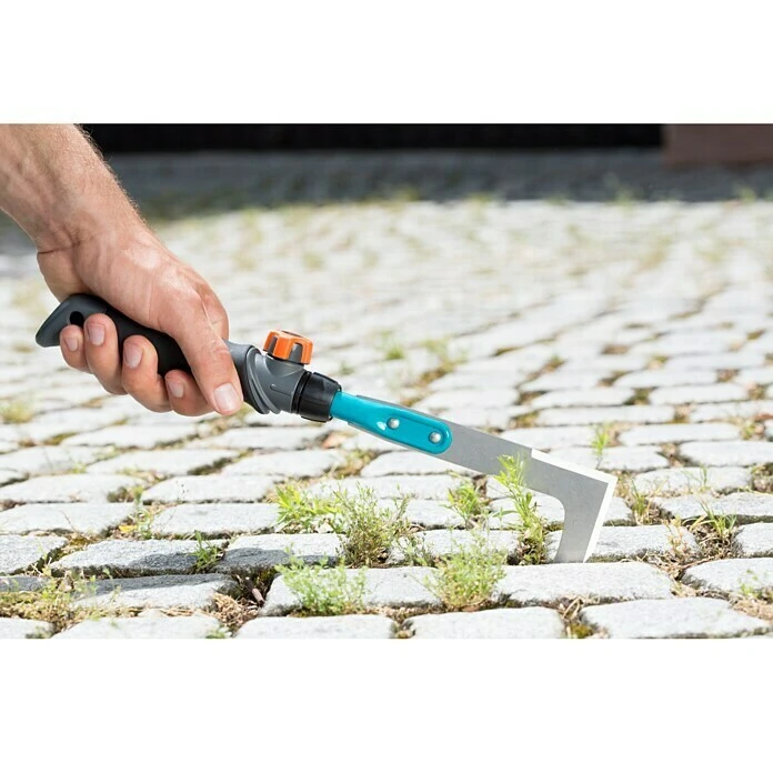 Der Gardena Combisystem Fugenkratzer ist der ideale Helfer zum Entfernen von Gras, Moos und Unkraut in Fugen und Kanten. Dank des ergonomisch geformten Griffs ist die Handhabung besonders angenehm. Das abgewinkelte Ende verhindert dabei das Abrutschen. Für ein rückenschonendes Arbeiten ohne Bücken kann der Handgriff auch abgenommen werden und durch einen beliebigen Combisystem-Stiel ersetzt werden. Der Kratzer mit Messerschutz ist aus hochwertigem Qualitätsstahl gefertigt und besitzt eine Duroplast-Beschichtung, was eine höhere Lebensdauer garantiert.
