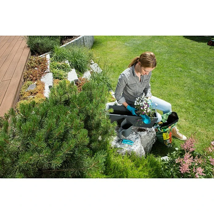 Dieses Gardena Combisystem Gartengeräte-Set ist der perfekte Einstieg in die Welt der Gardena Handwerkzeuge. Er enthält einen multifunktionalen Krug (zum Gießen und Graben), einen Spaten, eine Gartenschere und ein Paar Handschuhe zum Pflanzen und für die Bodenbearbeitung, die einen besonderen Schutz bei Arbeiten in feuchter Erde bieten.