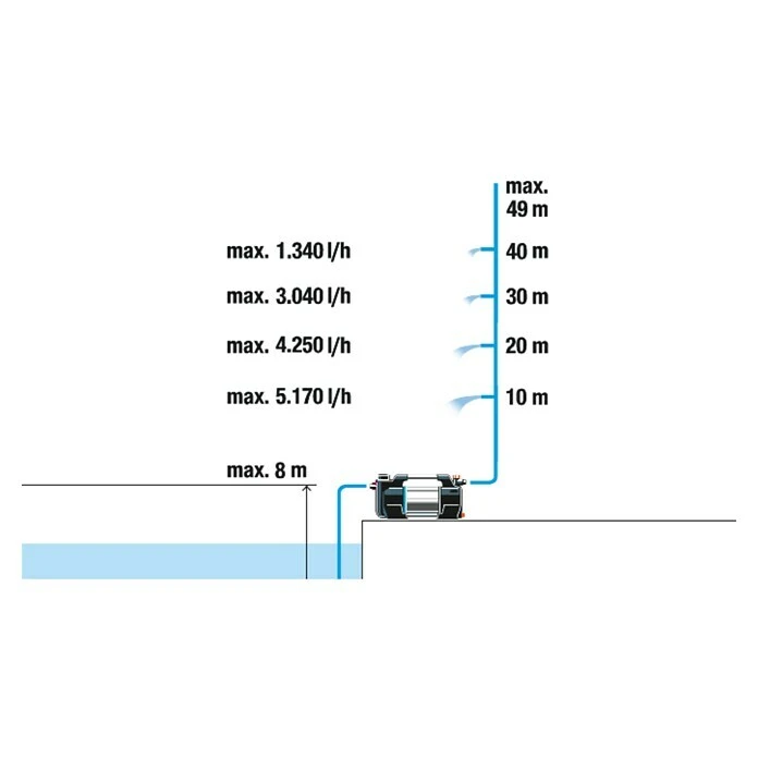 Die Gartenpumpe 6300 SilentComfort ist die leistungsstärkste Pumpe von Gardena und gleichzeitig energieeffizient. Sie erlaubt die Nutzung von Brunnen- oder Regenwasser zur Bewässerung des Gartens und saugt das Wasser aus einer Tiefe von bis zu acht Metern an. Bei einer Leistungsaufnahme von 1050 Watt erzielt sie mit Hilfe ihrer effizienten Hydraulik eine Durchflussrate von 6300 Litern pro Stunde bei 49 Meter Förderhöhe (4,9 bar). In der in Deutschland entwickelten Gartenpumpe kommt die innovative Mehrstufentechnik zum Einsatz. Diese sorgt für einen herausragend leisen Betrieb bei einer geringen Lautstärke von nur 45 dB Schalldruck in 5m Entfernung. Diese Technologie erfordert keinen Lüfter, da Abwärme über das Wasser abgeführt wird. Das führt zur höchsten Effizienz und geringsten Geräuschentwicklung.