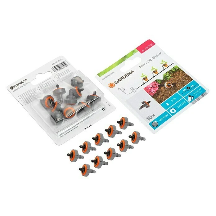 Der selbstreinigende und selbstschließende GARDENA Endtropfer für Pflanzen ist ideal für Hanglagen oder längere Tropfleitungen. Die Wasserabgabe ist konstant mit 2 l/h und unabhängig vom Druck (0,5 – 4 bar). Im Lieferumfang sind 10 Endtropfer enthalten.