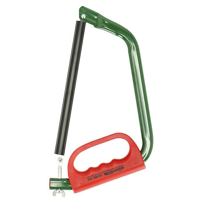 Die Comfort Bügelsäge (39,5 cm) von Gardol hat ein Hobelzahnsägeblatt aus impulsgehärtetem und lackiertem Karbonstahl. Das Sägeblatt wird über eine Flügelschraube gespannt und kann ersetzt werden. Der am pulverbeschichteten Stahlbügel befestigte Sicherheitsgriff aus ABS (stabiler und schlagfester Kunststoff) lässt ein sicheres Greifen der Säge zu. Ersatzsägeblätter für die Gardol Comfort Bügelsäge sind erhältlich.