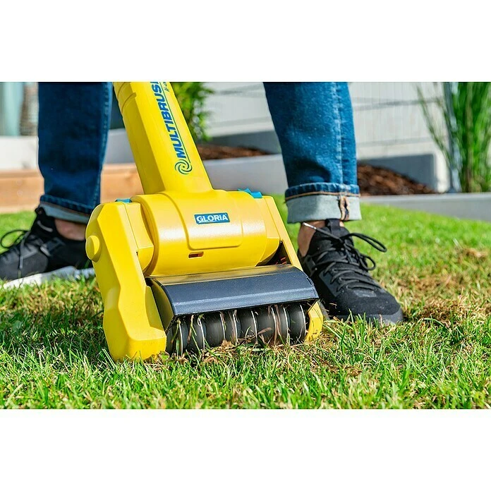 Mit der multifunktionalen Akku-Bürste von GLORIA wird der Kampf gegen Unkraut und Verschmutzung im heimischen Garten und um das Haus ein Kinderspiel. Kompatibel mit allen BOSCH 18V POWER FOR ALL Akkus von 1.5 – 6.0 Ah bietet die MultiBrush li-on Flexibilität und Komfort ganz ohne Elektrokabel. Das Multitalent besteht aus einer Antriebseinheit, an die sich verschiedene Bürstenwalzen zur Reinigung von Stein- und Holzoberflächen, zur Fugenreinigung, zum Kantenschneiden sowie zur Rasenpflege integrieren lassen. Der Wechsel der Aufsätze erfolgt werkzeuglos per Knopfdruck. Eine stufenlose Drehzahlregelung (450 – 1.260 U/min) im Griffbereich sorgt für Freiheit in der Anwendung. So können Steinoberflächen oder Fugen kraftvoll von Verschmutzungen befreit und mit dem gleichen Gerät pflegende Öle schonend in einen hochwertigen Holzboden auf einer Terrasse eingearbeitet werden. STEIN: Tief im Material sitzende Flechten oder Moos in den Zwischenräumen der Terrasse oder auf Wegen rund um das Haus sind lästige Verschmutzungen, die es zu beseitigen gilt. GLORIA stellt Ihnen hierfür gleich drei starke Helfer zur Seite, mit denen Sie so gut mit jeder Verschmutzung Herr werden. Bereits im Lieferumfang der MultiBrush li-on enthalten ist die weiche Nylon-Steinbürste SOFT, mit ihren unterschiedlich langen Borsten reinigt sie den Untergrund sanft bis in den kleinsten Zwischenraum. Die Steinbürste MEDIUM dient der Entfernung von oberflächlichen Verschmutzungen wie Grünbelag oder Moos und die Stahldrahtbürste PRO ist für das Grobe zuständig und nimmt es mit hartnäckigen und tiefsitzenden Verschmutzungen wie Flechten auf. FUGEN: In der Anwendung mit der Stahldraht-Fugenbürste, die ebenfalls im Lieferumfang enthalten ist, entfernt die MultiBrush li-on Unkraut und Moos, das in Fugen von Terrassen und Gehwegen sprießt. Die 15 mm breite Drahtbürste ermöglicht gründliches und genaues Arbeiten. Zusätzlich bietet GLORIA mit der Nylon-Fugenbürste eine sanftere Variante an. Diese hat weichere Borsten und ist damit besonders gut für kratzempfindliche Steinoberflächen geeignet. HOLZ: Als weiteres Zubehör erhältlich ist die Nylon-Holzbürste UNIVERSAL zur Reinigung und Pflege von Holzoberflächen. Dank des optimierten Bürstenprofils werden auch Rillen und Zwischenräume gründlich gesäubert. Das Institut für Holztechnologie Dresden (IHD) verglich die Reinigung von Terrassendielen mit der MultiBrush und einem handelsüblichen Hochdruckreiniger und kam zu einem eindeutigen Ergebnis: die Behandlung eines Holzuntergrunds mit den GLORIA Oberflächenbürsten ist dank der Bürstenbreite und des Bürstenprofils sehr gleichmäßig und effektiv. Mit einem Hochdruckreiniger kann aufgrund des oft kleinen Sprühstrahls ein nur ungleichmäßiges Reinigungsbild erzielt werden. Weiter ist die Reinigung mit der MultiBrush deutlich schonender für das teils hoch empfindliche Holzmaterial, da die Reinigungsintensität mit einem Hochdruckreiniger nur sehr schwer zu dosieren ist. KANTEN: Der 2-in-1 Kantenschneider Cut&Brush ist ein erstklassiger Helfer um zugewachsene Wege oder Bordsteine von überstehendem Gras zu befreien. Die 1 mm dünne, geschlitzte Edelstahlscheibe schneidet sich in den Boden und gleichzeitig befreit die 50 mm breite Nylon-Bürste Steinkanten vor überhängenden Graswurzeln. RASEN: Eine 165 mm breite Vertikutier-Walze ist ideal für die schnelle Bearbeitung kleinerer Rasenflächen geeignet. Acht Edelstahl-Messerscheiben entfernen abgestorbene Pflanzenreste einfach und effektiv aus dem Rasen, die andernfalls das Wachstum des Rasens verhindern. Der Rasen wird anschließend dichter und strapazierfähiger. Zudem wird die Nährstoffaufnahme des Bodens durch das Bearbeiten optimiert. Der Rasenlüfter-Aufsatz durchkämmt den Rasen und beseitigt lästigen Rasenfilz, bestehend aus vergilbten Blättern der Graspflanzen, Moos und unerwünschtem Wildwuchs. Das hat den Effekt, dass der Rasen hinterher besser belüftet wird und noch dichter zusammen wächst, da die Wurzeln nun wieder mehr Platz haben, um sich mit Wasser und Nährstoffen zu versorgen.