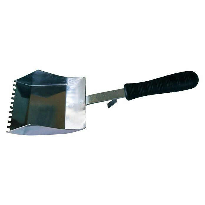 Diese Heka Porenbetonkleberkelle ist speziell für die Verarbeitung von Mörtel für Gasbetonsteine geeignet. Sie ermöglicht ein schnelles und exaktes Auftragen des Klebers, wobei durch die Kelle eine größere Klebermenge auf einmal verarbeitet werden kann. So wird ein schnellerer Arbeitsfortschritt erreicht und die Anwendung erleichtert. Die Kleberkelle ist mit einer Zahnung ausgestattet, sodass immer die passende Menge des Klebers aufgebracht und dadurch bestmöglicher Halt der Gasbetonsteine erreicht wird. Der Grill liegt gut in der Hand, bei Nichtbenutzung kann die Kelle durch den angebrachten Bügel einfach im Eimer eingehängt werden.