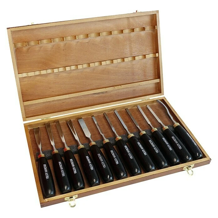 Der Holzmann Kerbschnitzsatz besteht aus 12 Messern mit langen schmalen Holzgriffen und garantiert ein angenehmes Handling. Alle Messer haben eine Gesamtlänge von 20,5 cm und eine Messerlänge von 7,5 cm. Die Einzelteile sind in einer formschönen Holzkiste untergebracht, in der jedes Teil seinen festen Platz hat und so eine übersichtliche Ordnung gewahrt bleibt. Durch die unterschiedlichen Messerformen ist das Schnitz-Set ideal für Einsteiger und erfahrene Anwender geeignet, die sich mit einer Grundausstattung ausrüsten wollen.