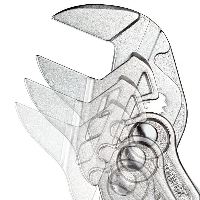 Der einstellbare Zangenschlüssel von Knipex eignet sich hervorragend zum Greifen, Halten, Pressen und Biegen von Werkstücken und ersetzt dadurch einen Satz Schraubenschlüssel, metrisch wie zöllig. Dank glatter und parallel geführter Greifbacken lässt er sich nicht nur zur schonenden Montage von oberflächenveredelten Armaturen einsetzen, sondern es ist auch ein stufenloses Greifen aller Schlüsselweiten bis zur angegebenen Kapazität möglich. Die Einstellung am Werkstück erfolgt per Knopfdruck. Durch sicheres Einrasten des Gelenkbolzens wird eine unbeabsichtigte Verstellung verhindert. Der Hub zwischen den Greifbacken ermöglicht schnelles Anziehen und Lösen von Schraubverbindungen nach dem Ratschenprinzip, ohne dass die Zange abgesetzt werden muss. Außerdem besitzt dieser Zangenschlüssel eine hohe Klemmkraft durch seine zehnfache Handkraftverstärkung.