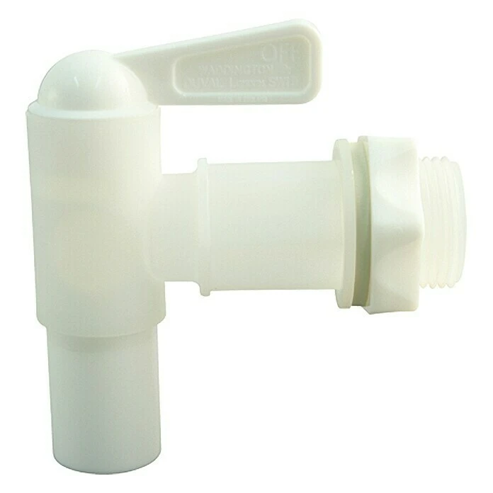 Der Auslaufhahn aus Kunststoff eignet sich zum Anschluss an eine Regentonne oder ein Regenfass. Er ermöglicht eine bequeme und regulierte Wasserentnahme.