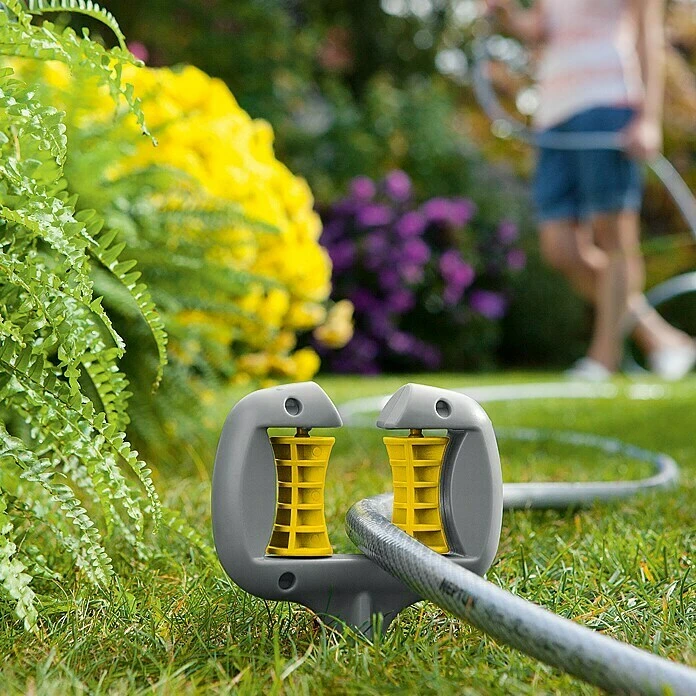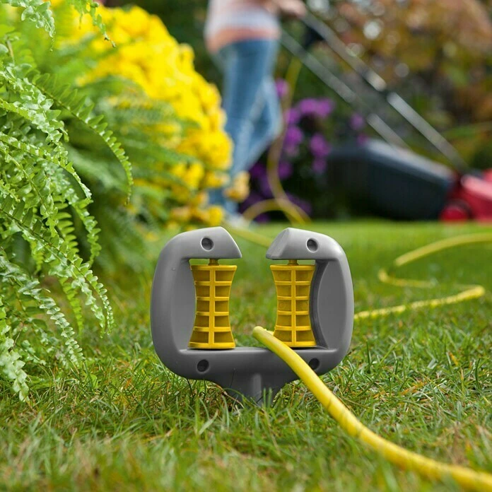 Die Neptun Schlauch- und Kabelführung ist sehr praktisch. Sie leitet den Schlauch oder die Kabel um Beete, Büsche und Bäume herum. Somit wird ein Verklemmen und Beschädigen des Schlauches verhindert. Des Weiteren schützt er Pflanzen vor Beschädigungen durch den Schlauch. Die Erdspieße ermöglichen ein leichtes Anbringen der Führungseinheiten im Erdreich.