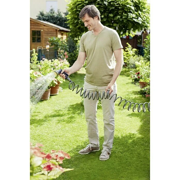 Das Neptun Spiralschlauch-Set Classic ist ideal zur Bewässerung von Pflanzen auf Terrassen und Balkonen und zur Bewässerung kleinerer Flächen. Durch die Spirale wird der Schlauch wieder automatisch zusammengezogen. Das Set besteht aus einem 15 m langen Schlauch, einer 7-Positionen-Brause, einem Hahnstück, und einer Kupplungen.