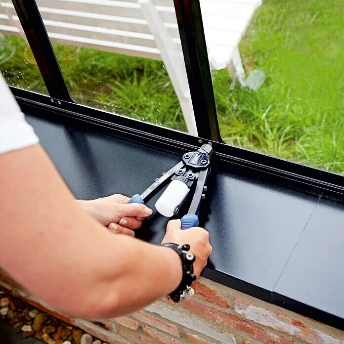 Die Blindnietzange RP100 von Rapid ist eine präzise arbeitende, besonders leistungsstarke Nietzange, die mit der einzigartigen Press-Less Technologie zur Reduzierung des benötigten Kraftaufwands ausgestattet ist. Sie ist das richtige Werkzeug zur Verarbeitung von Nieten aus Aluminium und Edelstahl mit einem Durchmesser von 3,2 mm, 4 mm und 4,8 mm. Der Griffhebel mit Softgrip sowie das leichte Aluminiummaterial sorgen für hohen Bedienkomfort, auch über einen längeren Zeitraum. Der Wechsel der gehärteten Mundstücke erfolgt ganz bequem mit Hilfe des integrierten Montageschlüssels und der integrierte Nietdornauffangbehälter sorgt für einen sauberen Arbeitsplatz. Mit der Blindnietzange RP100 erledigen Sie selbst langwierigste Aufgaben mühelos und ohne Ermüdungserscheinungen.