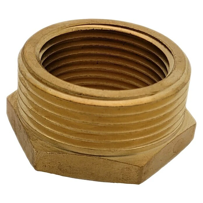 Das messingfarbene Reduzierstück mit 1¼″ (41,91 mm) Außengewinde auf 1″ (33,25 mm) Innengewinde ist universell einsetzbar sowie korrosionsbeständig.