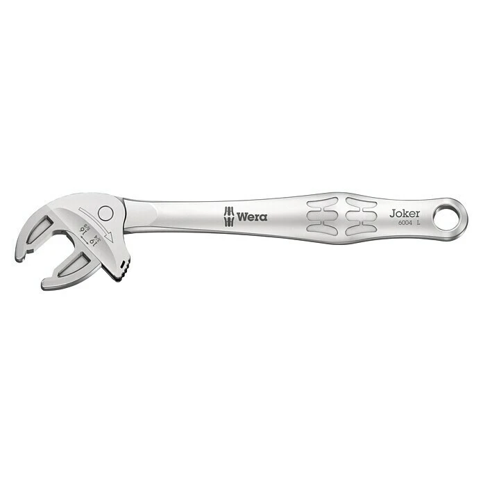 Viele Anwender wünschen sich ein universelles Schraubwerkzeug mit möglichst großem Einsatzspektrum. Ein einziges Werkzeug für mehrere metrische und zöllige Abmessungen sollte es sein. Es sollte sich automatisch auf die unterschiedlichen Schraubengrößen einstellen. Sicher zupacken, nichts beschädigen und eine hohe Arbeitsgeschwindigkeit ermöglichen. Durch die stufenlos und parallel geführten Backen werden mehrere Maulschlüssel-Einzelabmessungen ersetzt. Die benötigte Größe stellt sich beim Ansetzen an der Sechskant-Mutter oder -Schraube stufenlos von selbst ein. Der integrierte Hebelmechanismus klemmt die Sechskant-Schraube bzw. -Mutter zwischen den Backen sicher ein, was die Gefahr des Abrutschens und der Beschädigungen deutlich verringert. Für das schnelle und durchgängige Schrauben ohne Absetzen sorgt die Ratschenfunktion. Durch die Nutzung der Eckweiten-Prismen ist ein Rückschwenkwinkel von nur 30° realisierbar. Die Ein-Schenkel-Konstruktion in Verbindung mit der Ratschenfunktion und dem Eckweitenprisma ermöglicht das Arbeiten auch in engen Bauräumen. Der verstellbare Joker 6004 ist das universelle Schraubwerkzeug, da er selbstjustierend, zupackend und ratschend ist.