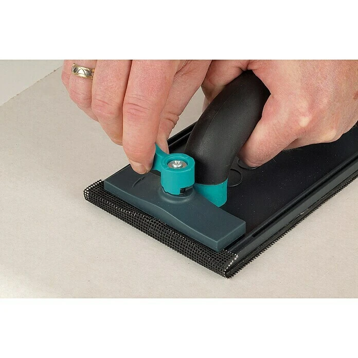 Das Handschleifer-Set von Wolfcraft ist ideal zum Schleifen beim Trockenbau. Die mitgelieferten Schleifgitter setzen sich nicht so schnell zu wie herkömmliches Schleifpapier, sind robuster und verfügen über eine längere Lebensdauer. Im Klemmgriff können die Schleifblätter einfach eingespannt und durch den Spannverschluss sicher geklemmt werden. Der ergonomische Griff ermöglicht eine sehr gute Handhabung und Führung des Handschleifers. Aber nicht nur beim Glätten von Übergängen zeigt das Schleifer-Set seine Stärke, sondern auch zum Brechen von Kanten an Gipskartonplatten und Porenbeton. Falls nicht an Gipskartonplatten gearbeitet werden muss kann auch herkömmliches Schleifpapier eingespannt werden.