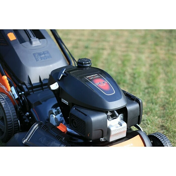 Der Yard Force Benzinrasenmäher besitzt einen leistungsstarken Honda Qualitätsmotor GCV145 mit 145cm³ und 2kw Laufleistung. Leicht bedienbare Schnitthöhenverstellung mit 7 Stufen (min. 25 / max. 75 mm), sorgen für angenehmes arbeiten. Kompaktes Schneidwerk mit 46 cm Schnittbreite – ideal zum sauberen und randnahen Mähen. Ideal für Rasenflächen bis ca. 1.800 m². 3in1 Funktion – Auffangen, Seitenauswurf und Mulchen. Die Messer sind aus einem hochwertigem Spezialstahl gefertigt und mit einer Schnellstopp-Funktion ausgerüstet. Einfach entnehmbarer 55-Liter Fangsack mit Tragegriff und Füllstandsanzeige. Der Benzinrasenmäher GM H46A hat zusätzlich einen Boardcomputer mit digitaler Anzeige, zur Erinnerung des Ölwechsels, Luftfilterwartung, Batterwechsel des Boardcomputers, Zündkerzenwartung und Messerwechsels.